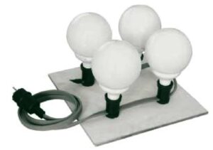 Unser einfaches Modell besteht aus vier Fassungen, die auf ein kleines Sperrholzbrett geschraubt werden. Als Lichtquelle dienen vier Energiesparlampen, sogenannte Globelampen à 20 W oder LED-Lampen.